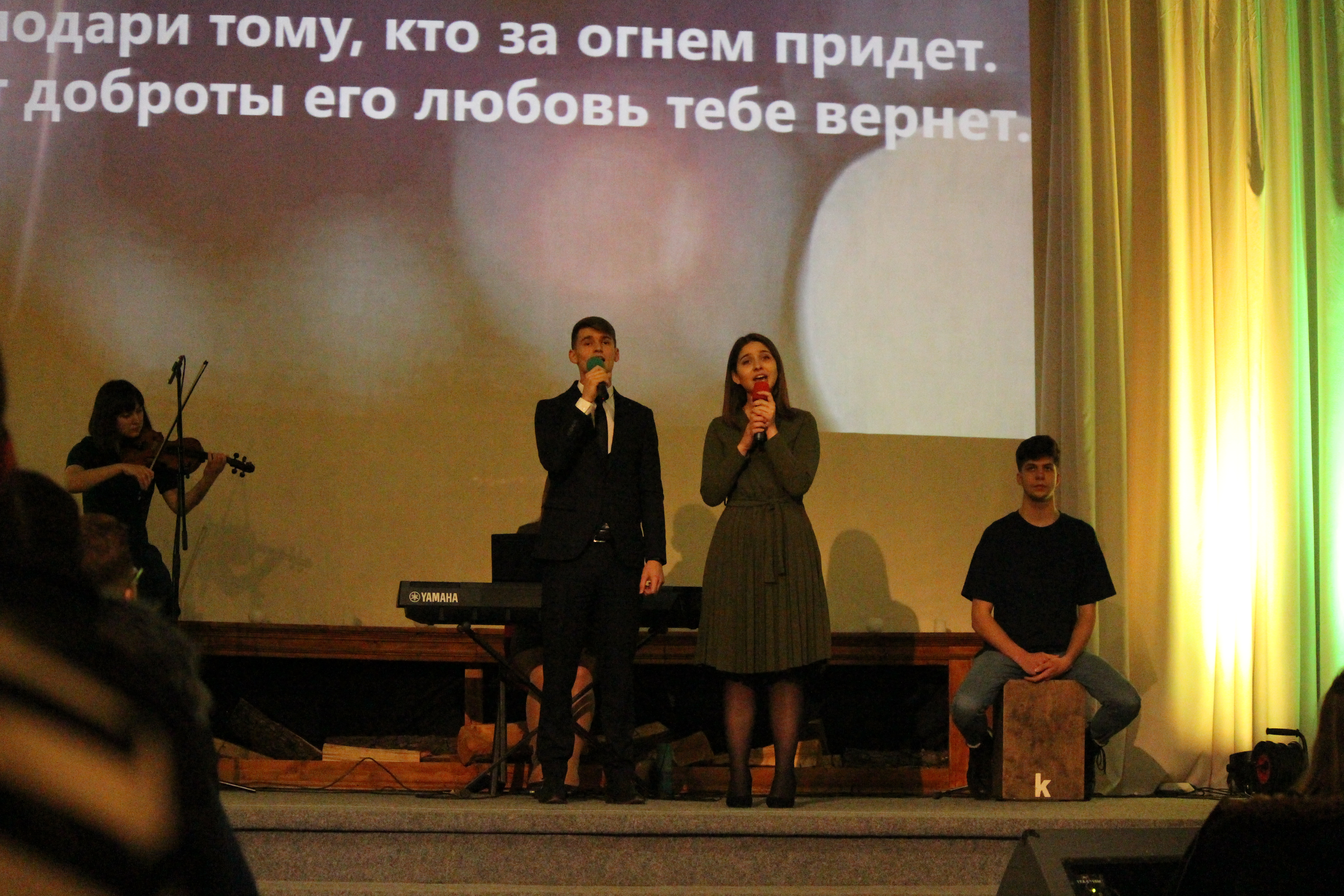 «Не в словах молитвенных речей», «Ти знаєш, Боже, моє бажання», «Свечи зажжем» та подібна музика лунала в залі та серцях людей. Атмосфера була максимально затишною та домашньою. На сцені співали музиканти, але кожен із залу підспівував і прославляв Бога.